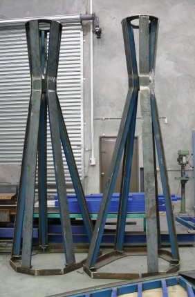 The column and roof of every shade structure is comprised of five individual beams, each reaching out to their surroundings with open arms tapering outwards creating a sense of lightness and motion along some of Dorset Square's key pedestrian areas.  The shades are formed from vertically curled, large-scale stainless steel boronia petals.  The laser cut pattern allows sprinkles of sunlight to filter through the canopies of the shading structures, creating a joyful play of light and shadow, while dramatic uplighting produces an equally spectacular effect at night.